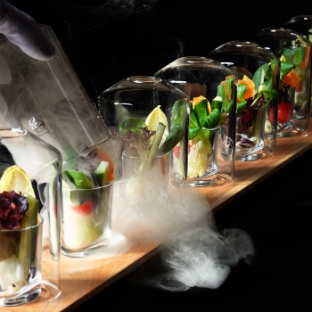 Gläserne Glocken sind ideal für das Räuchern von Tellergerichten oder bestimmten Stellen auf einem Teller. Ideal für ausgefallene, elegante Teller-Layouts. Unsere Glasglocken stammen aus der Glasi Hergiswil. Das grosse Modell misst 14 cm in der Höhe; der Durchmesser ist 9 cm.